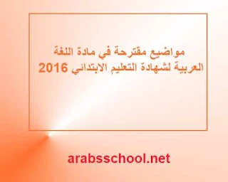 مجموعة من المواضيع المقترحة لإمتحان نهاية السنة الدراسية لشهادة التعليم الابتدائي 2016 في مادة اللغة العربية لطلاب السنة الخامسة ابتدائي متوفر للتحميل, بالتوفيق والنجاح إنشاء الله.